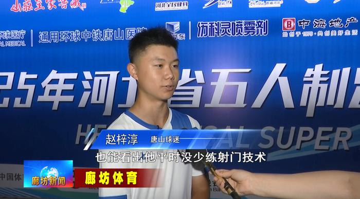 唐山球迷赵梓淳:比赛很精彩,廊坊队员射门十分冷静,也能看出他平时没少练射门技术。唐山的门将在第一节其实发挥特别出色,多次扑出廊坊队爆射或者推射。