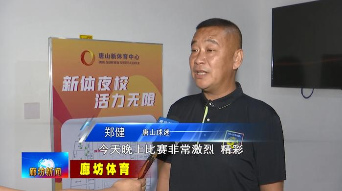 唐山球迷郑健:今天晚上比赛非常激烈、精彩,感觉唐山主场第一次遇到比较强劲的对手。